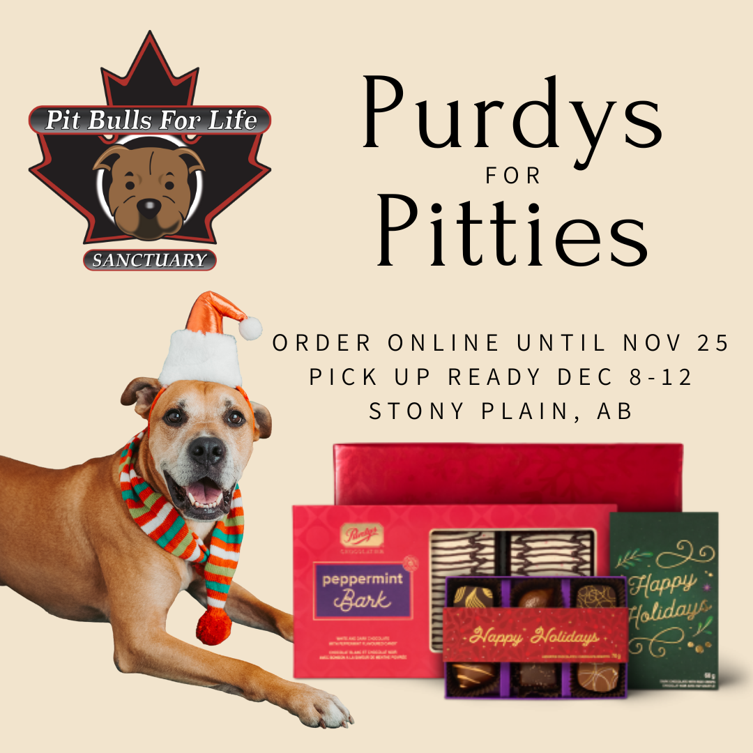 Support our rescue this holiday season with our Purdy’s Chocolatier Fundraiser — Purdy’s for Pitties! Every purchase helps us continue caring for and rehoming bully breeds in need.